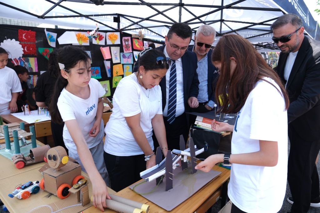 Programda öğrencilerimiz oyunlu gösteriler, deneyler yapmanın yanı sıra, e-Twinning Projeleri, geri dönüşüm malzemelerinden sanatsal tasarımlar ve yıl boyunca derslerde yaptıkları materyalleri davetlilere sergilediler.
